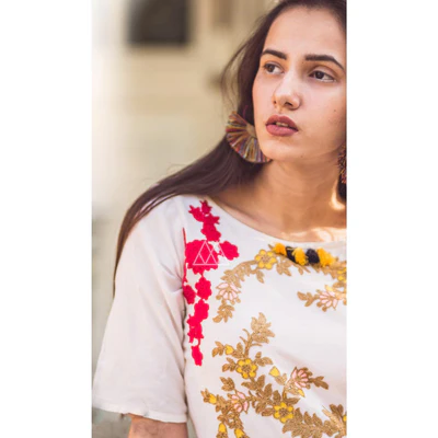 White Embroidered Linen Long Kurti