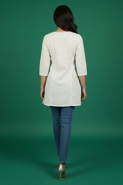 Cream Floral Embroidered Pure Cotton Flex Straight Top