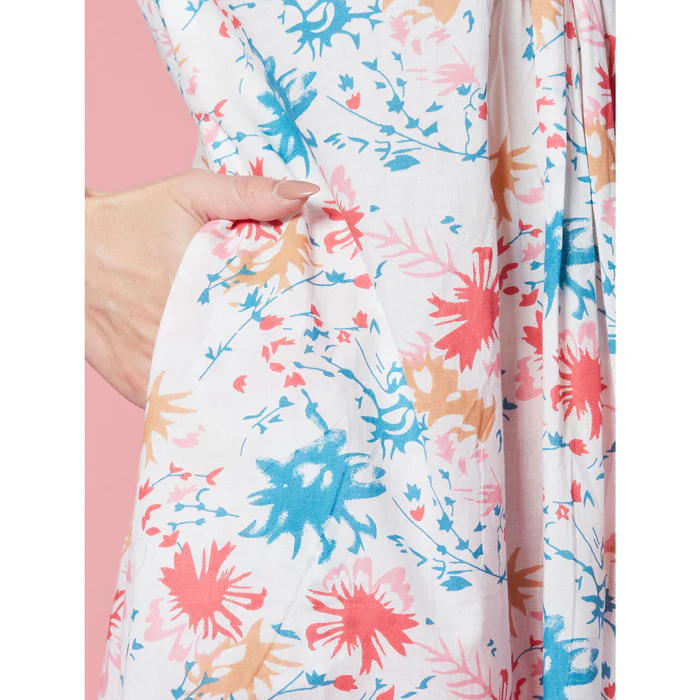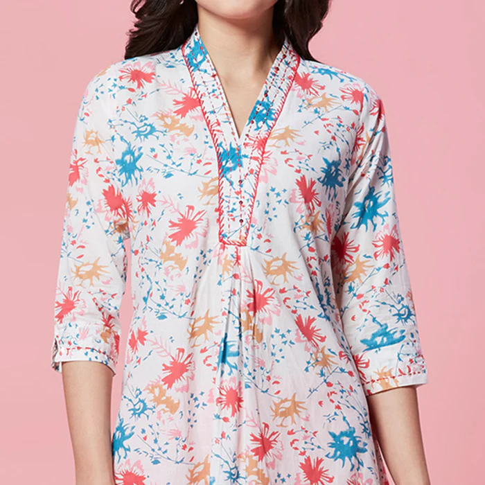 Pure Cotton Off White Shirt Top with Timeless Floral Print Detailing