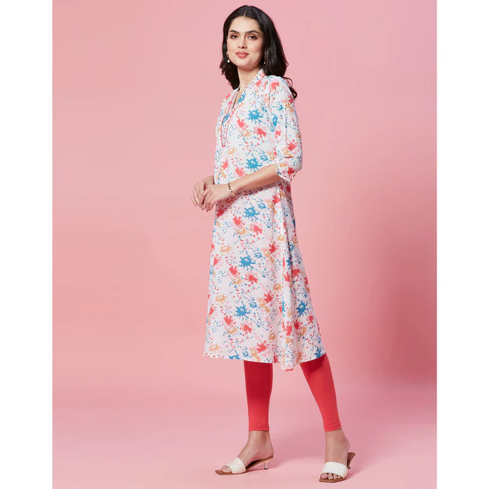 Lavender Viscose Kurti Featuring Shimmering Floral Foil Print