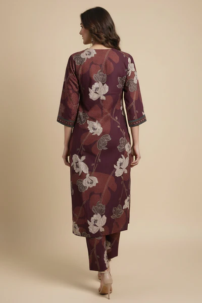 Wine Blossom Woven Rayon A-Line Festive Top and Bottom Ensemble