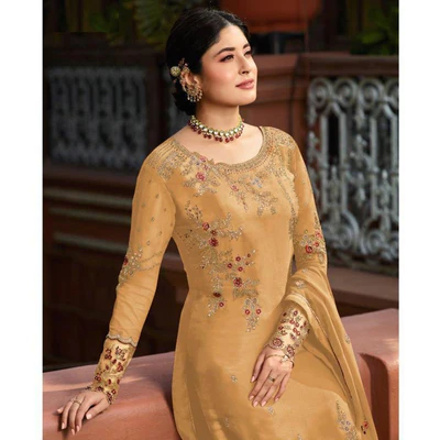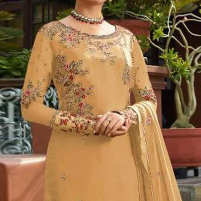 Yellow Embroidered Gerorgette Straight Partywear Suit